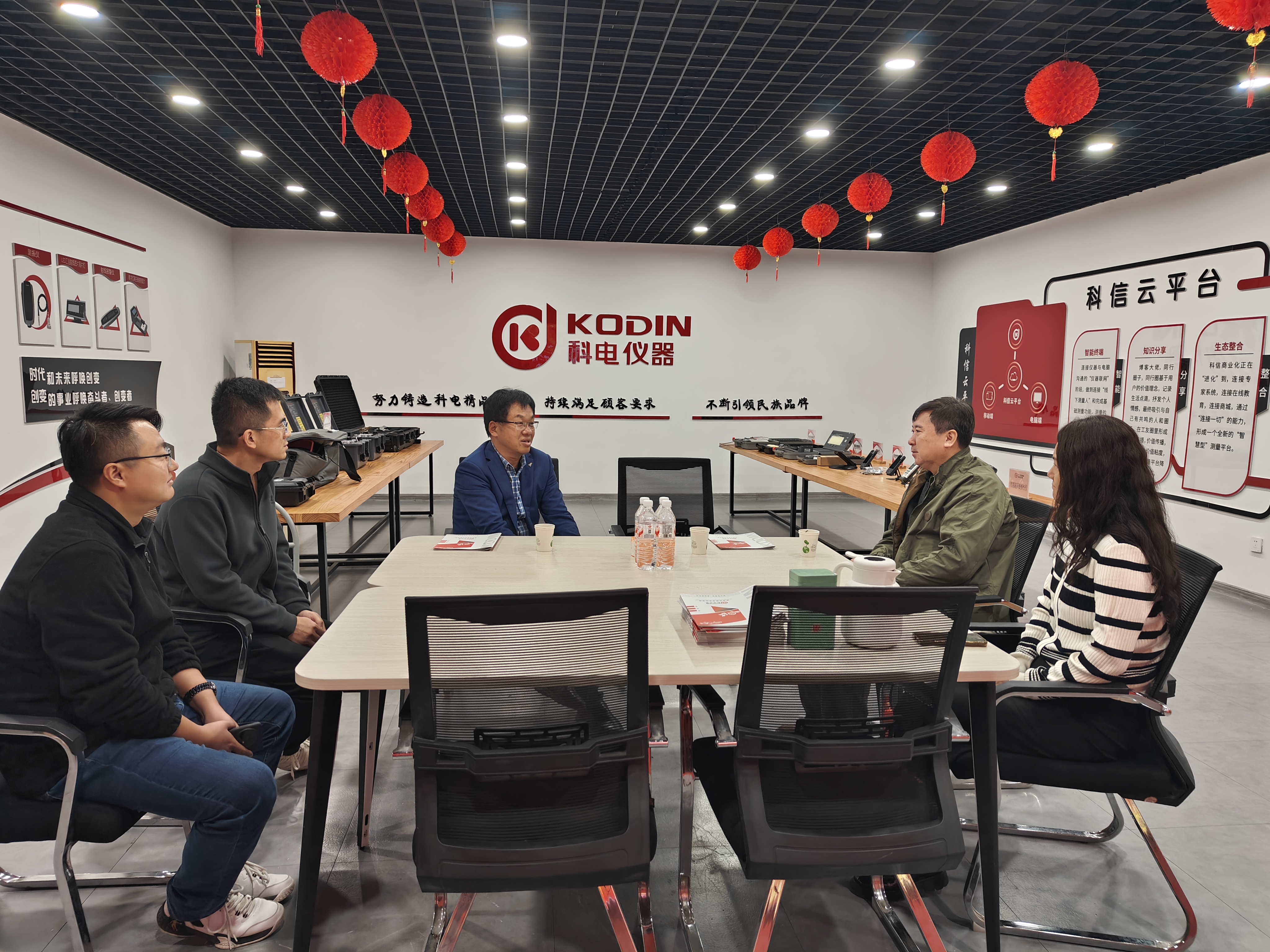 交流伊始,雙方在科電儀器展廳開展會談。